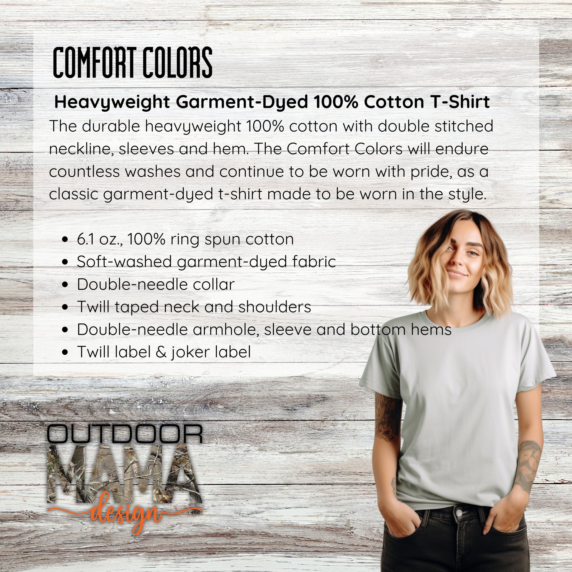 The durable heavyweight 100% cotton with double stitched neckline, sleeves and hem. The Comfort Colors will endure countless washes and continue to be worn with pride, as a classic garment-dyed t-shirt made to be worn in the style.